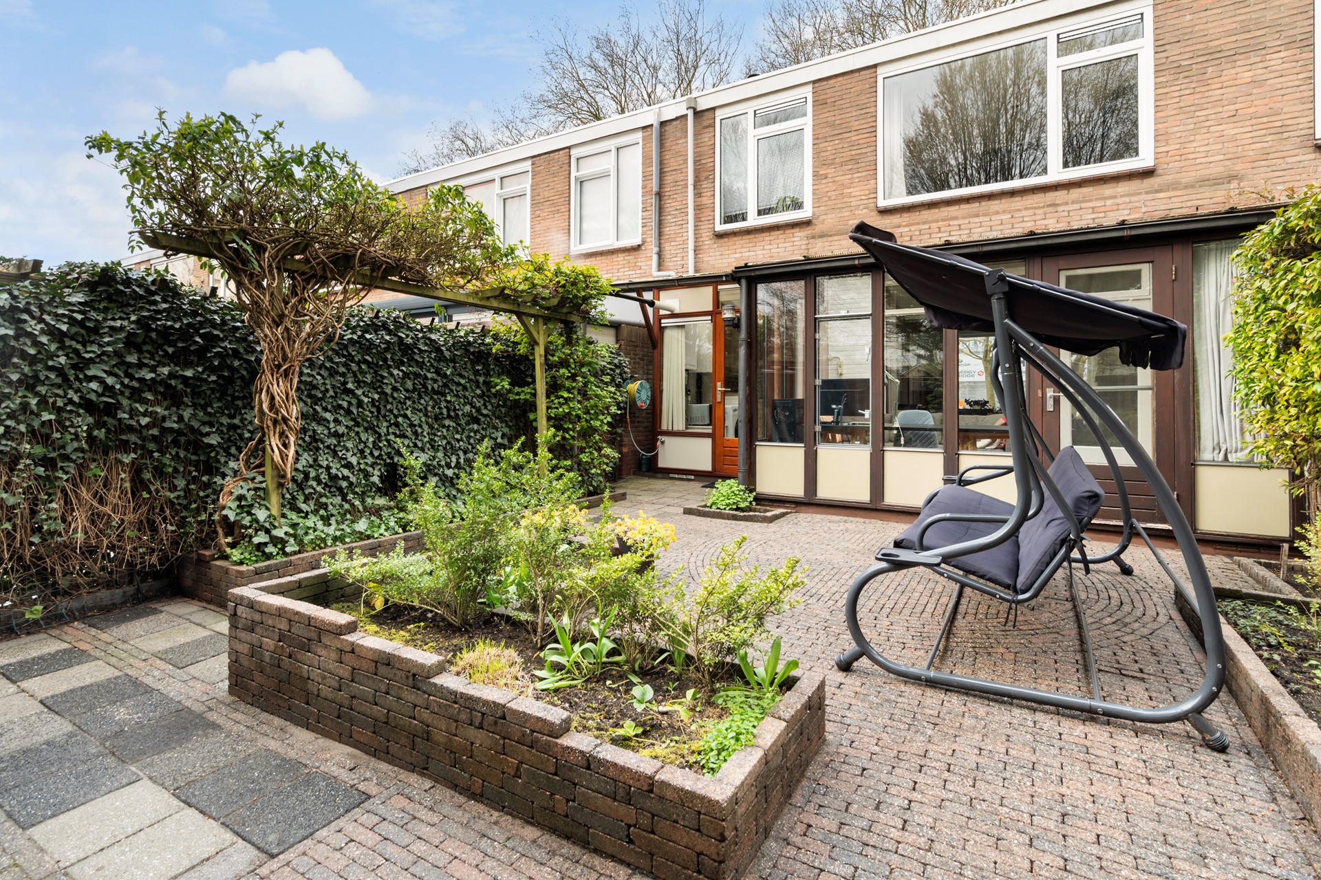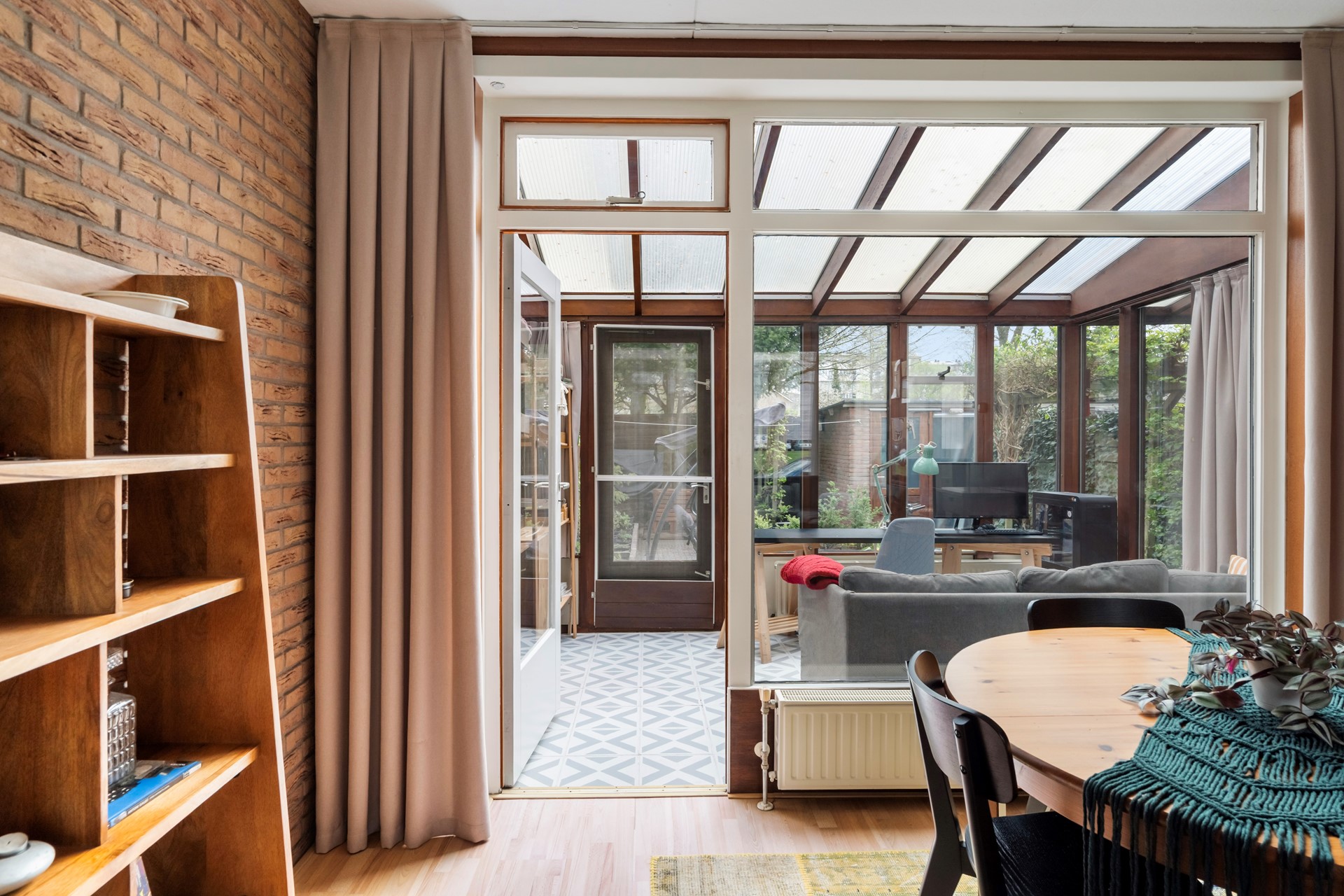 De serre (ca. 14 m²) aan de achterzijde is een echte bonus: een extra leefruimte waar je het hele jaar door kunt zitten, werken of ontspannen met uitzicht op de mooi aangelegde tuin.