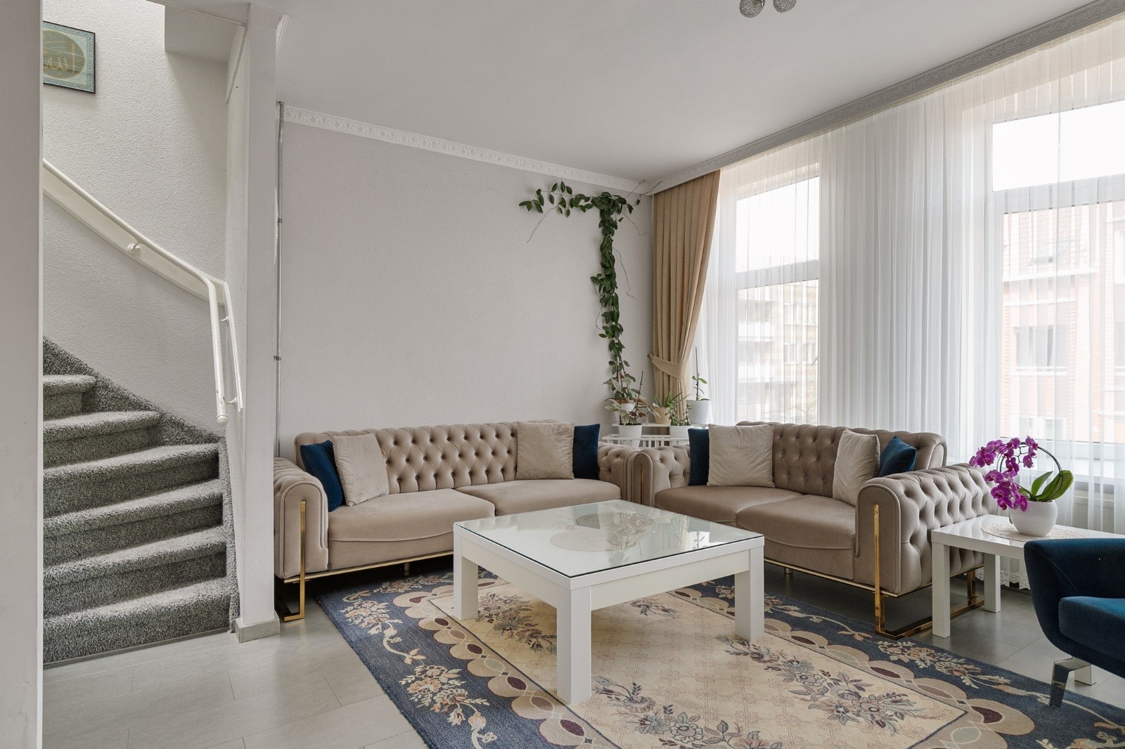 Op de bovenverdiepingen is nog een volledige woning met woonkamer, twee slaapkamers, keuken en badkamer.
